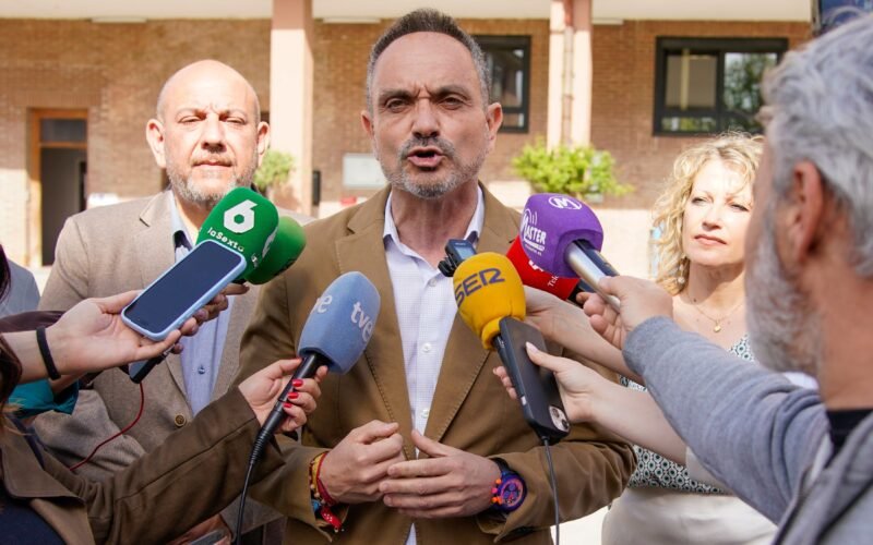 El alcalde de Móstoles, Manuel Bautista, atiende a los medios frente al ayuntamiento de Móstoles, en Madrid, el 20 de abril de 2026.