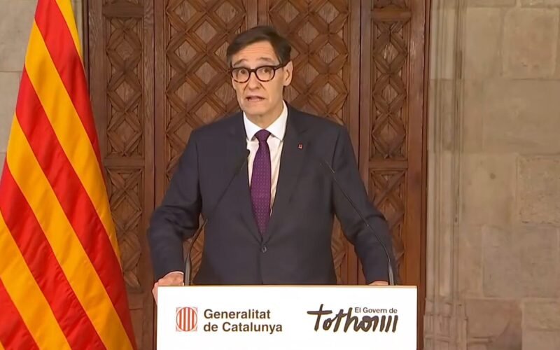El presidente de la Generalitat, Salvador Illa, en su comparecencia ¡de este lunes.