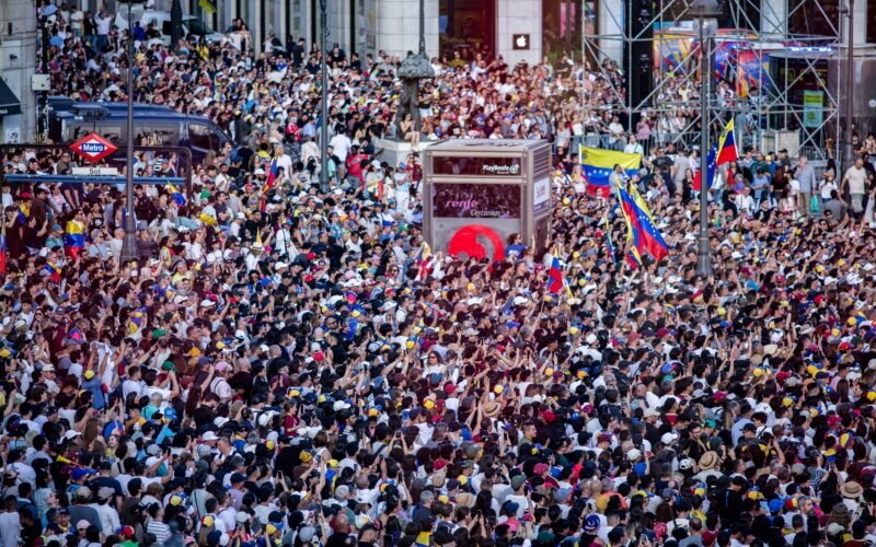 Los gritos surgieron de algunos asistentes de las primeras filas del público, pero se extendieron por la plaza cuando fueron promovidos por el cantante desde el escenario. Poco después llegó la aparición de Ayuso y la líder opositora desde el balcón y la posterior intervención de María Corina Machado desde ese mismo escenario. Durante la hora que duró el mitin en la Puerta del Sol los únicos gritos que se escucharon fueron “libertad, libertad”.