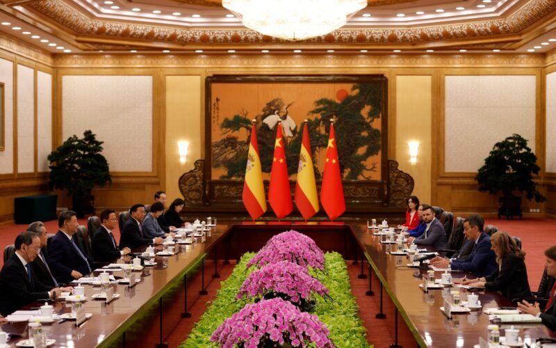 Colocados frente a frente, presidiendo ambos sus delegaciones en una gran mesa rectangular, Xi y Sánchez han reeditado la foto de los últimos cuatro años en el Gran Salón del Pueblo, con toda la liturgia del protocolo chino, pero intercambiando gestos de asentimiento y cordialidad. Cuatro banderas de España y China presiden la escena en la que el líder de la superpotencia asiática y el presidente español han exhibido sintonía en un momento de tensión del Gobierno español con Estados Unidos. Xi Jinping quiere mantener esa línea: “Debemos reforzar la comunicación, consolidar la confianza mutua y estrechar nuestra cooperación”.